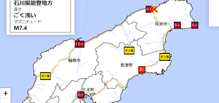 4 普通のニュース / 気象 2024/1/1 月曜日 by くまさん · Published 2024/1/1 月曜日 石川県能登地方で震度7の地震 新潟県でも震度6弱 M7.6(24/1/1) なんとっ!M7.6 深さ10km未満でM7.6が能登半島近傍で発生とか 日本海中部地震とか思い出すべ