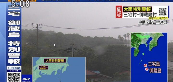 0 普通のニュース / 気象 2020/10/10 土曜日 by くまさん · Published 2020/10/10 土曜日 【#特別警報】三宅島 御蔵島に大雨特別警報発令(20/10/10) なんとっ! あのgdgdになってる台風14号で特別警報となっ!