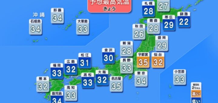 今日は静岡あたりが熱波の爆撃を食らう模様