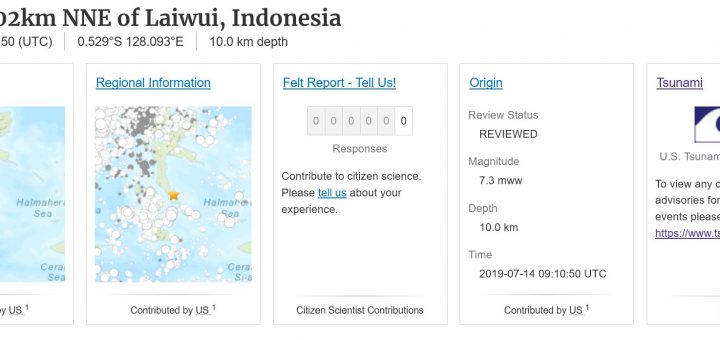 2 地震火山 / 普通のニュース 2019/7/14 日曜日 by くまさん · Published 2019/7/14 日曜日 【#地震】インドネシアでM7.3 深さ10km(19/7/14) またインドネシアで地震じゃげな インドネシアっちゅうてもフィリピン海...