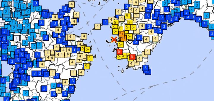 調べたら豊後水道,愛媛高知で震度6弱,たいがいデカすぎ