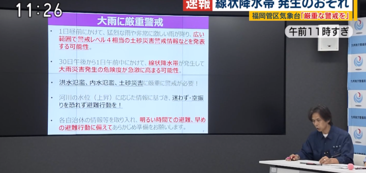 0 普通のニュース / 気象 2023/6/30 金曜日 by くまさん · Published 2023/6/30 金曜日 【#線状降水帯】NHKで気象庁:緊急記者会見キター(23/3/60) ぬぉっ!NHKで福岡管区気象台の緊急記者会見を中継しちょる これは大...
