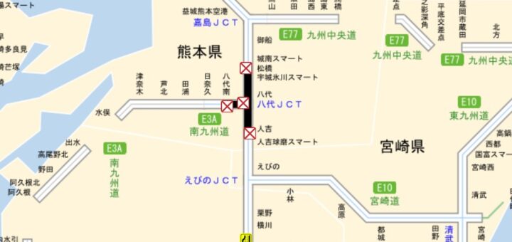 あんれ,九州道は,八代~人吉がまだ通行止めかいな