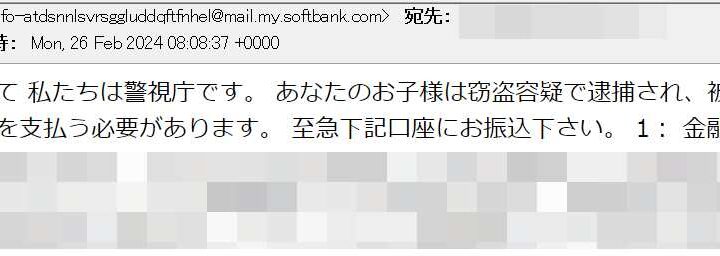 警察庁:「あなたのお子様は窃盗容疑で逮捕され、被害者に100万円の賠償金を支払う必要があります」
